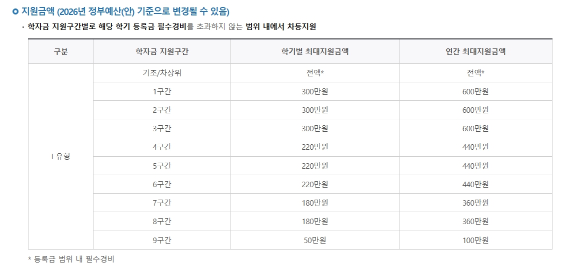 2026 소득분위별 국가장학금 지급금액