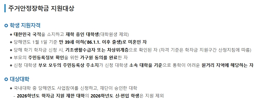 2026 주거안정장학금(기초·차상위 대상)