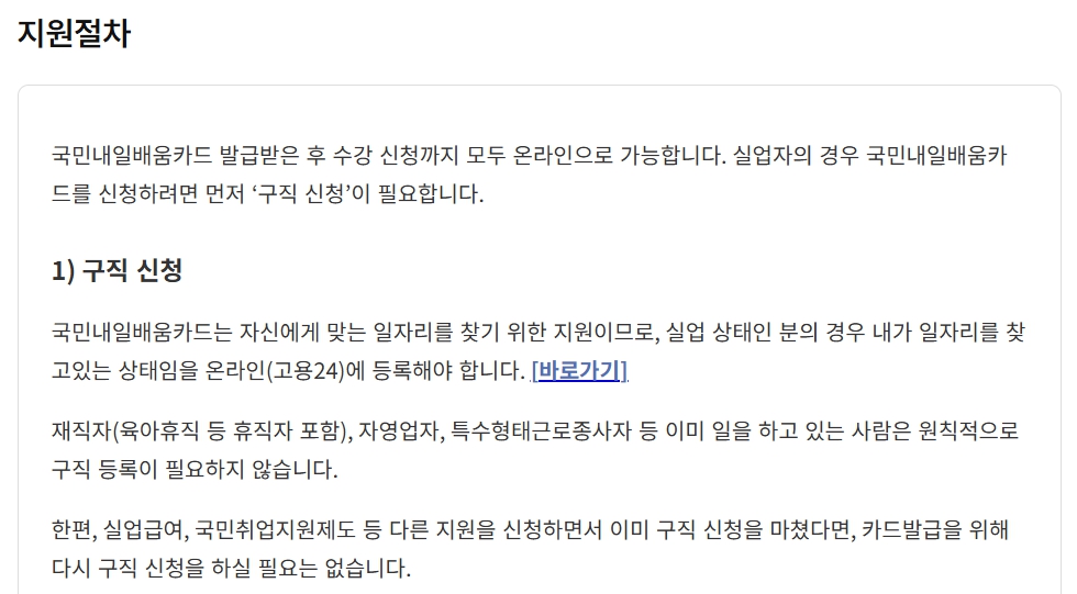 - ‘국민 내일배움카드’ 발급 신청 메뉴 선택