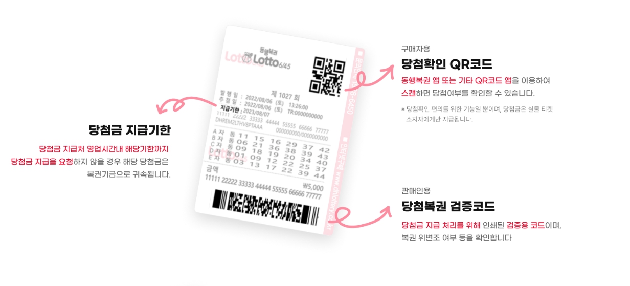 • 다만, 구매한 복권이 훼손된 경우에는 복권의 1/2 이상 원형이 보존되어 컴퓨터 인식이 가능한 복권에 한해서만 당첨금을 지급합니다.