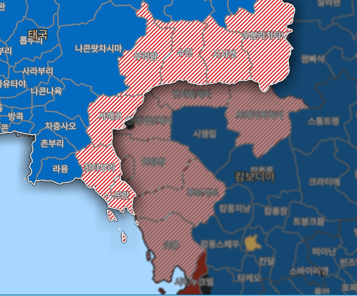 - 태국 동북부 국경 지역(수린·시사켓·부리람)