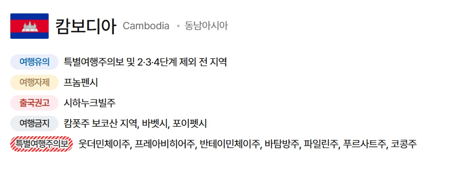 여행 팁: 항공 이동 중심으로 일정 구성하고, 육로 국경 이동은 피해라. 특히 국경 근처 관광지(예: 프레아비히어 사원)는 방문 계획에서 제외해야합니다.
