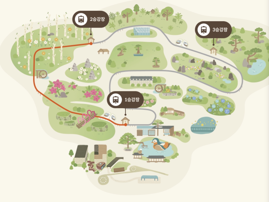모노레일 1구간(오르막) 이용하고 천천히 꽃 구경하시면서 걸어 내려오시는 걸 추천합니다.