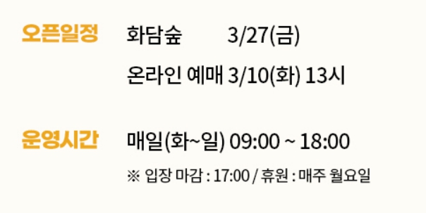 - 봄 시즌 개장일 : 3월 27일 금요일