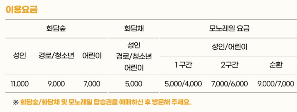 - 화담채 및 모노레일 구매하기 위해서는 화담숲 입장권을 먼저 선택해 주세요.