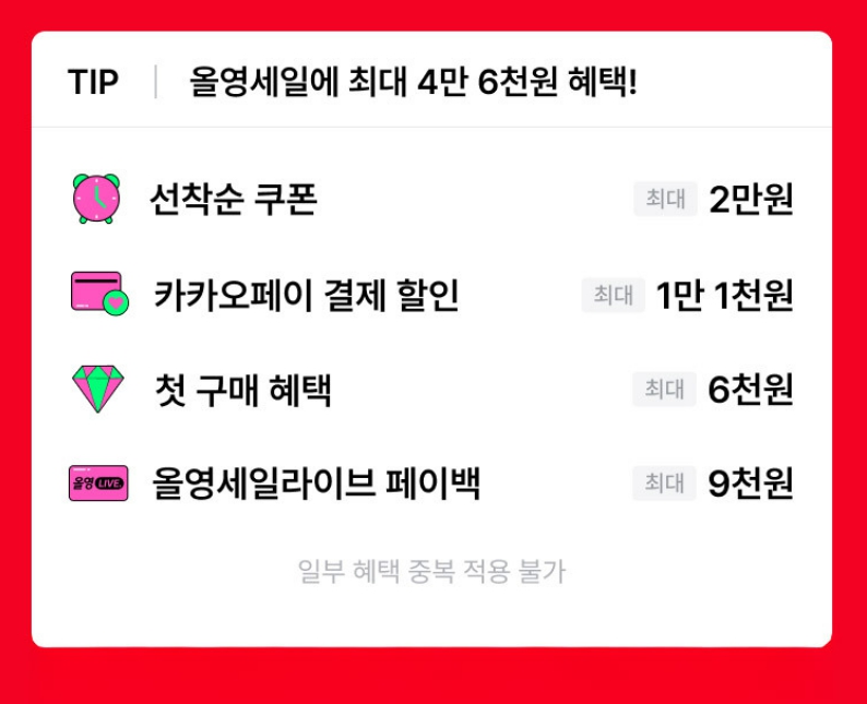 - “선착순 쿠폰 + 쿠폰팩 + 결제 수단 할인 + 기획 세트 할인” 조합을 활용하면 체감 할인 폭이 크게 증가