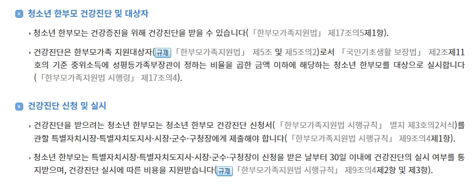 4. 청소년 한부모가족은 건강진단을 받을 수 있습니다.