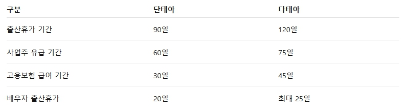 다태아(쌍둥이 이상) 출산 휴가 기간